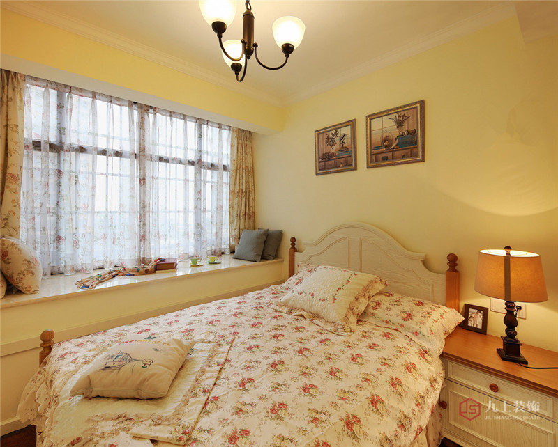主臥原有飄窗拆除后做成了儲物矮柜,兩側(cè)設(shè)計成儲物柜兼顧書柜飄窗也可以看看書、喝茶,享受難得的寧靜