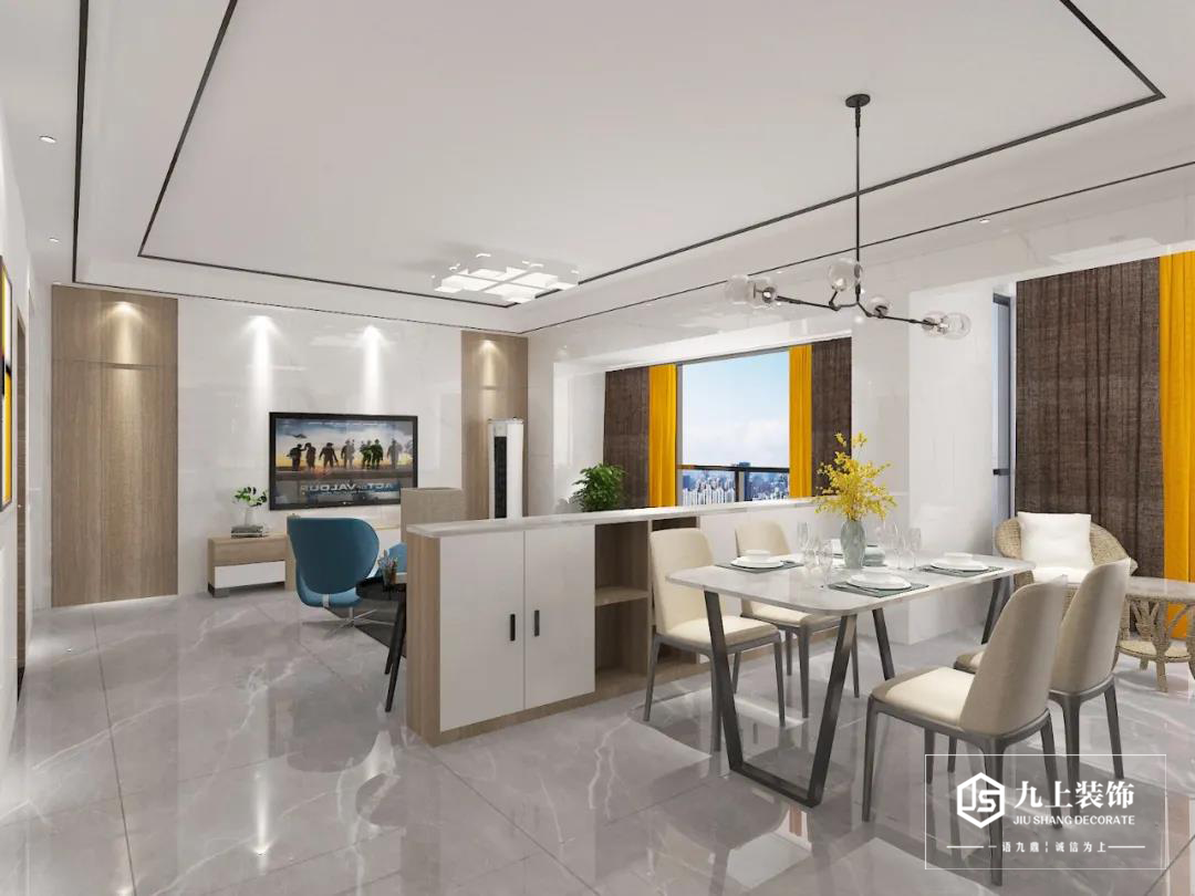 時尚的餐桌搭配金屬細腳的桌椅,顯得精致感十足。富有設(shè)計感的吊燈在這一空間里顯得格外恬靜,用餐氛圍極佳。