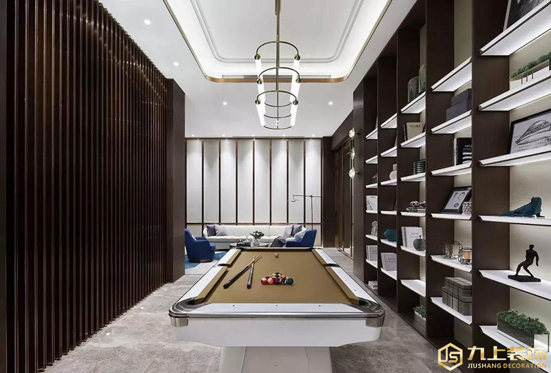 整體空間以現(xiàn)代簡雅的硬裝基礎(chǔ),布置上禪意優(yōu)雅的軟裝家具,顯得簡雅舒適而愜意;在家里設(shè)置棋牌室、桌球室等功能,讓居家娛樂也有著更加多樣化的體驗。