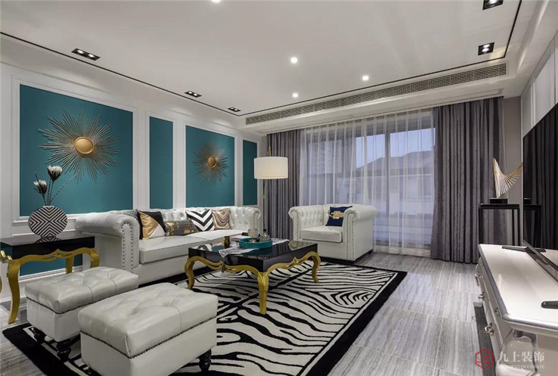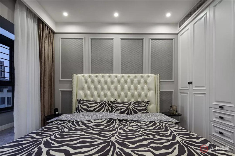 軟包床頭優(yōu)雅舒適,黑白色的斑馬紋床上用品,個性時尚。