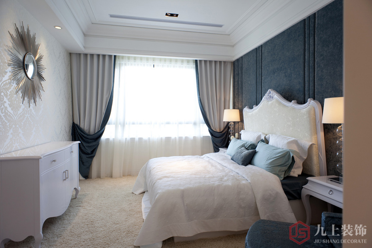簡(jiǎn)歐風(fēng)格臥室裝修設(shè)計(jì),整體的家具以及配飾的搭配都是選用清新淡雅的設(shè)計(jì)。