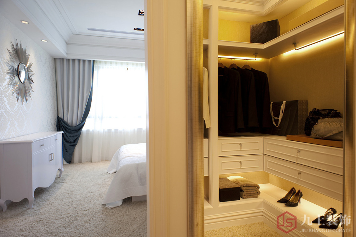 主臥根據(jù)業(yè)主的需求做了一個(gè)衣帽間的處理,更加方便平時(shí)的生活習(xí)慣。