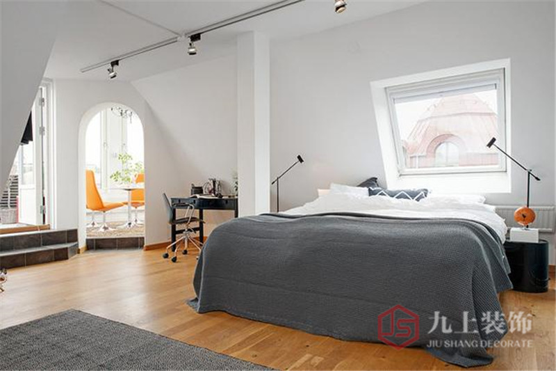 臥室藍(lán)灰色和白色為主,搭配現(xiàn)代感十足的燈飾,更顯朝氣蓬勃。