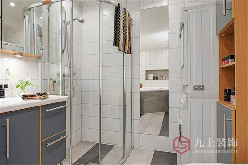 浴室和臥室選擇同種色調(diào),干凈明亮??臻g利用率高,功能性高。