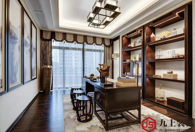 餐廳簡(jiǎn)約的書(shū)桌設(shè)計(jì),采用流云元素設(shè)計(jì)的抽屜拉手,如行風(fēng)流云般的輪廓線條,流暢飄逸,靈動(dòng)而高雅。