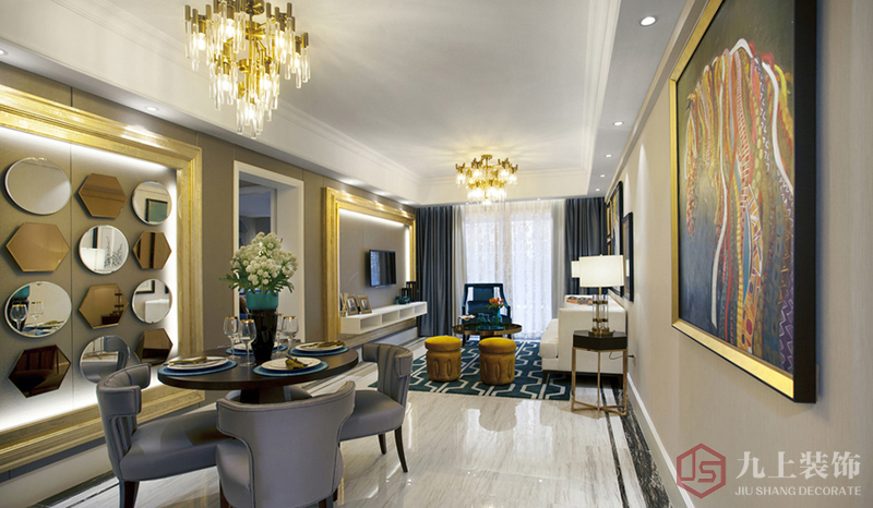 設計上采用現(xiàn)代的基礎,加入輕奢元素與大都會家具,與軟裝融為一體。