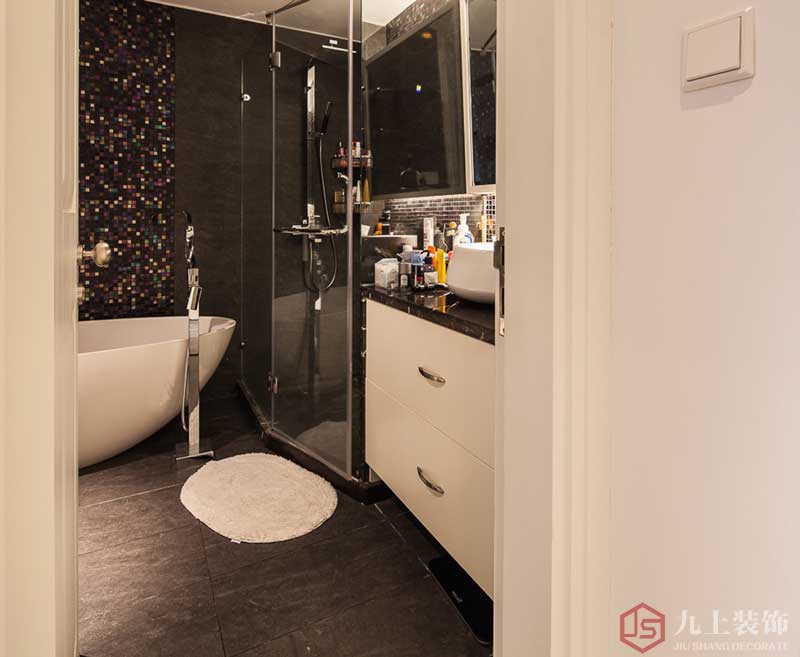 彩色馬賽克點綴的衛(wèi)生間墻面猶如夜空中閃爍的繁星。