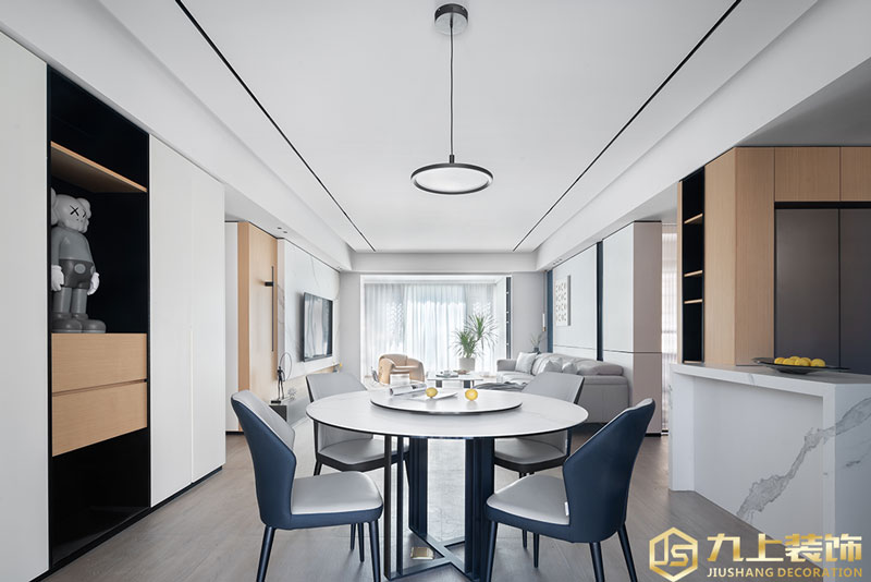 兼顧實(shí)用性與美觀性的餐廳布局,摒棄傳統(tǒng)隔斷。以開敞式大平層的客餐廳設(shè)計(jì),避免視覺上的壓迫感,給人心靈以釋放。