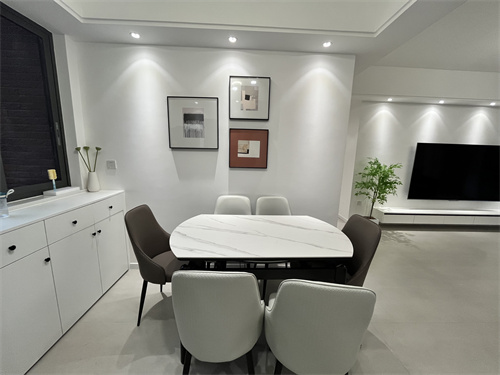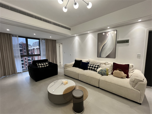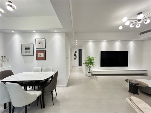 此案例最大的亮點在于地面馬可波羅柔光磚,全屋通鋪出來質感非常強,此戶型是一梯兩戶洋房戶型,可搭建一個位置作為多功能房。整體設計以清新舒適為主。