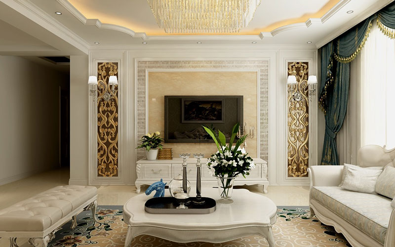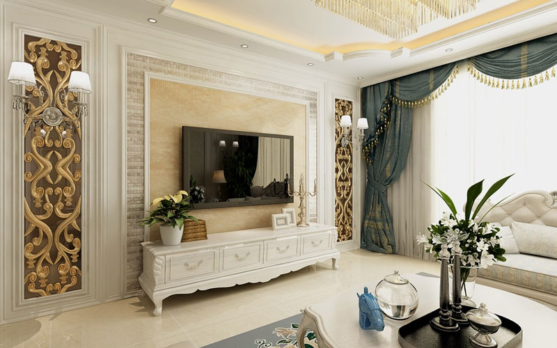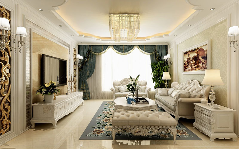 在設計上追求空間變化的連續(xù)性和形體變化的層次感,室內多采用帶有圖案的壁紙、地毯、窗簾、床罩、帳幔及古典裝飾畫,體現(xiàn)華麗的風格。