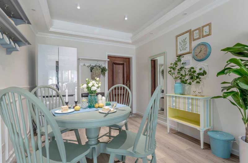 九上裝飾四季花城混搭風(fēng)格,該案例是一對年輕小夫妻的家,女主人少女心十足,期待和對家的幻想,女主人喜歡淺藍(lán)作為主色調(diào),用黃色作為輔助色增加年輕感,把老人房做成了時(shí)尚的橘色,打破傳統(tǒng)老人房必須要深色或者老氣的感覺。在輕柔的硬裝空間里,硬裝色彩弱化,通過軟裝藍(lán)色做為主色調(diào)貫穿。