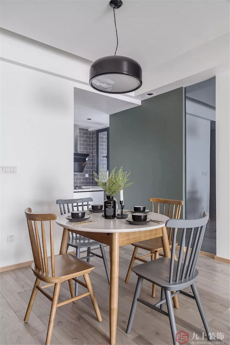 餐廳-以灰藍色為主調(diào),原木桌提升品質(zhì)