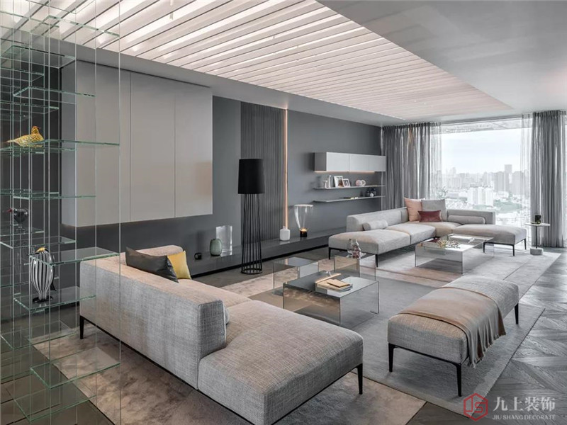 客廳-材質(zhì)與顏色上的混合拼接所營造出的層次感同時也體現(xiàn)在起居室的設(shè)計里,使住客好多年也不會感覺到審美疲勞。在這里,絨面地毯與光滑的大理石和鏡面玻璃相結(jié)合