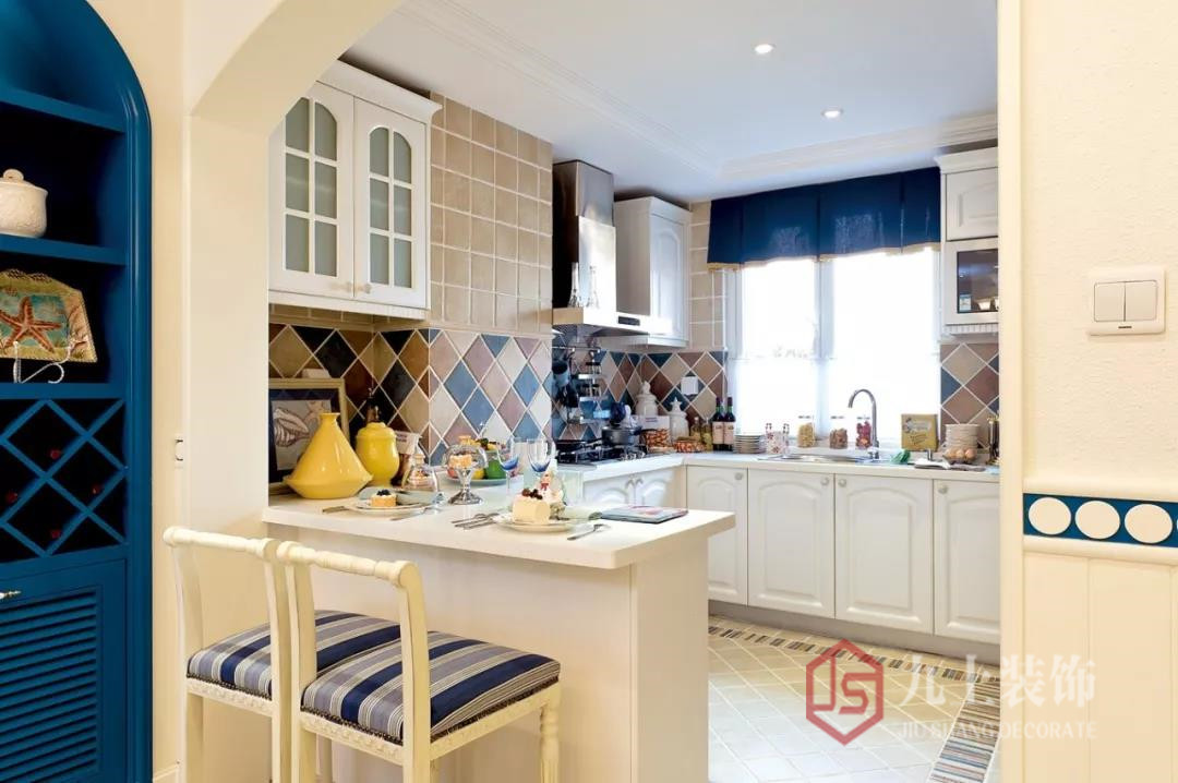 地中海風(fēng)格裝修還通過以海洋的蔚藍(lán)色為基色調(diào)的顏色搭配方案,自然光線的巧妙運(yùn)用,富有流線及夢(mèng)幻色彩的線條等軟裝特點(diǎn)來表述其浪漫情懷