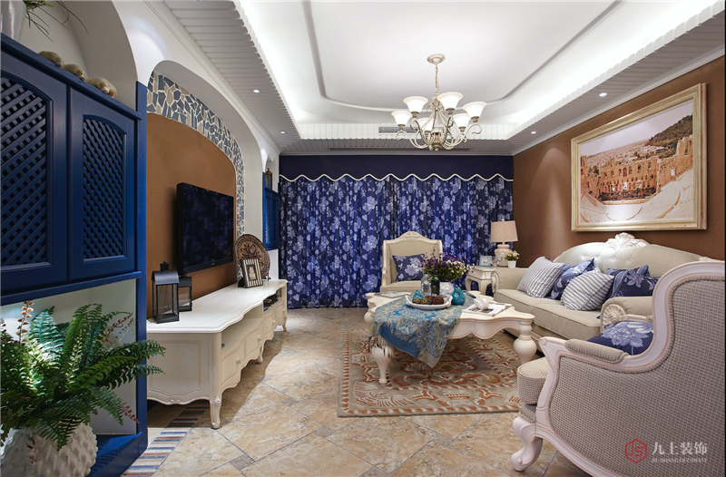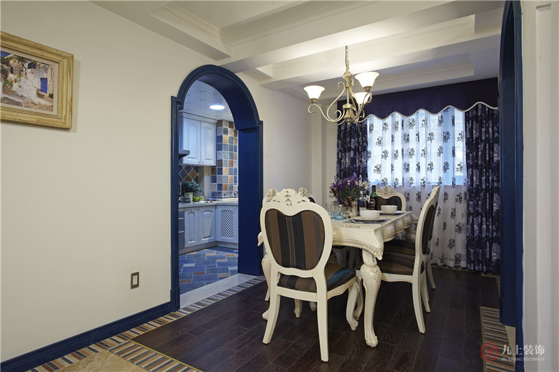 “地中海風(fēng)格”對中國城市家居的最大魅力,來自其純美的色彩組合。這戶業(yè)主家里以藍、白、黃色系為主,色彩對比鮮明。