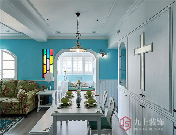 以家傳情,滿足女主人對(duì)鄉(xiāng)村居家的向往,讓淡藍(lán)光暈染出一片幸福景象,是男主人的浪漫。電視背景陳以白色文化石,打在散發(fā)柔白療俞力的鄉(xiāng)村暖度。