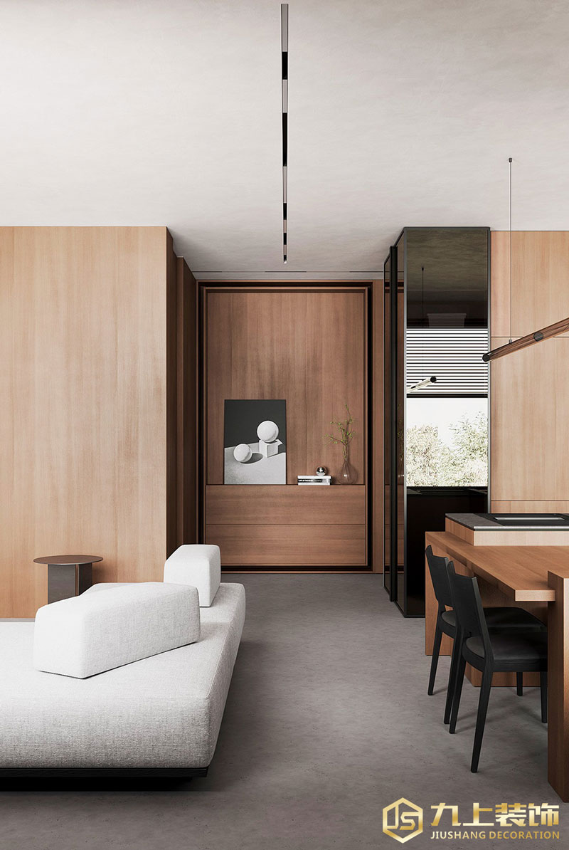 原木是最接近自然的元素,當溫暖舒適的原木色彩遇見克制冷靜的高級灰,一冷一暖,碰撞出獨特的愜意之情和舒適的高級簡約感。