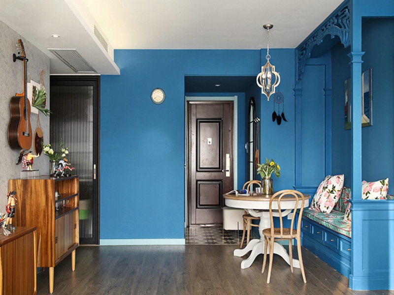 熱情,自由都是東南亞的代名詞。鮮艷的色彩自然就成了東南亞風(fēng)格裝修的標(biāo)志,也能在夏季帶來(lái)些許的清涼感。墻面整體用清爽的藍(lán)色為底,豐富、有趣的擺設(shè)讓整個(gè)空間都活潑起來(lái),淺色沙發(fā)印花的地毯都還原出東南亞的自由與快樂(lè)。原木的電視柜和立柜又忠于東南亞豐富多彩的植物,讓人想起參天的棕櫚樹(shù)、豐富的水果。
