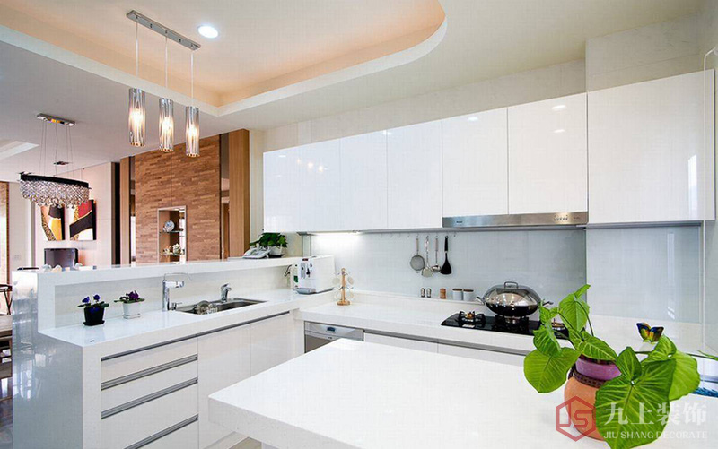 白色的廚房給人干凈明亮的感覺,鋼烤建材的使用讓廚房更好的清理。