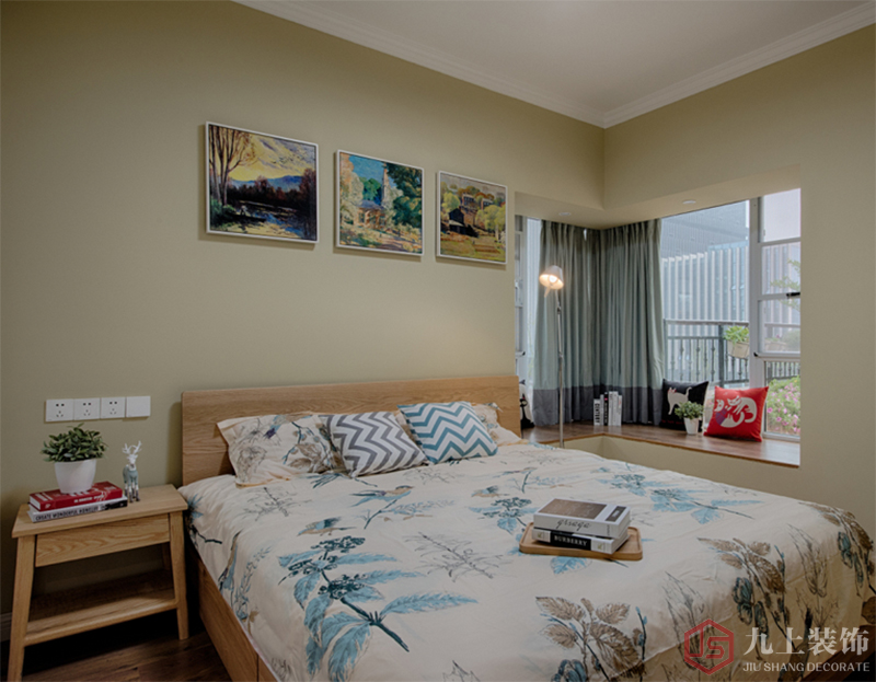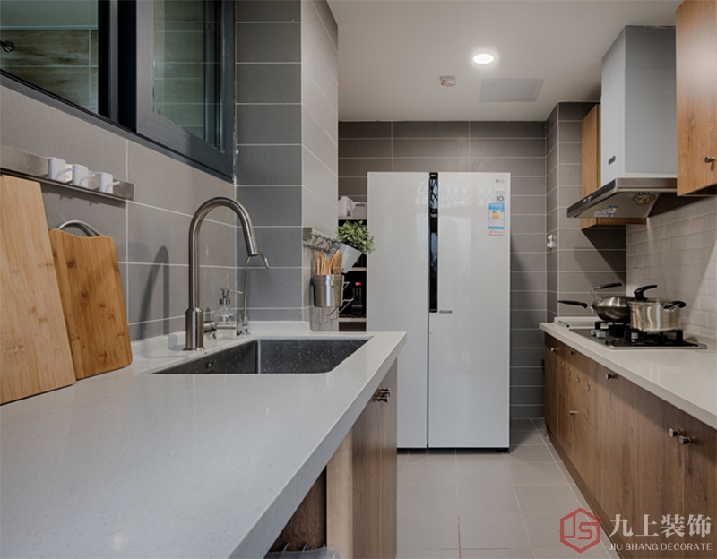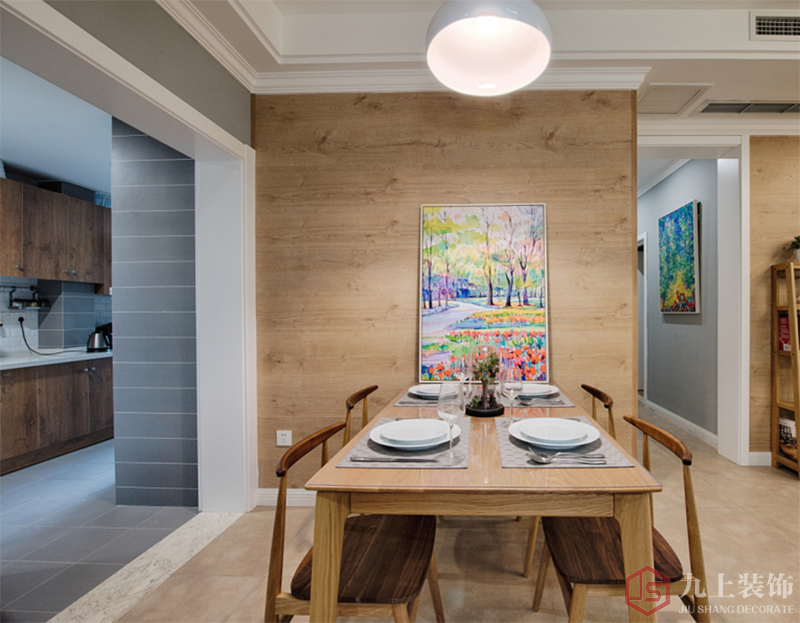 原木色的餐廳點(diǎn)睛的裝飾畫和諧呼應(yīng)。