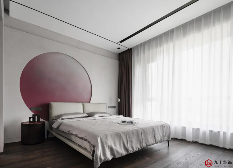 大的落地窗,讓空間采光充足白天陽光會讓酒紅色更積極向上,夜里感恰到好處的氛圍難掩熱烈與浪漫。