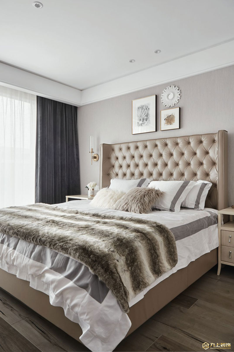 臥室延續(xù)了整體設(shè)計(jì)風(fēng)格,淡雅的配色和精致的壁燈、裝飾畫(huà),不經(jīng)意間流露細(xì)膩獨(dú)特的設(shè)計(jì)心思,同時(shí)也展現(xiàn)優(yōu)雅柔和的氣