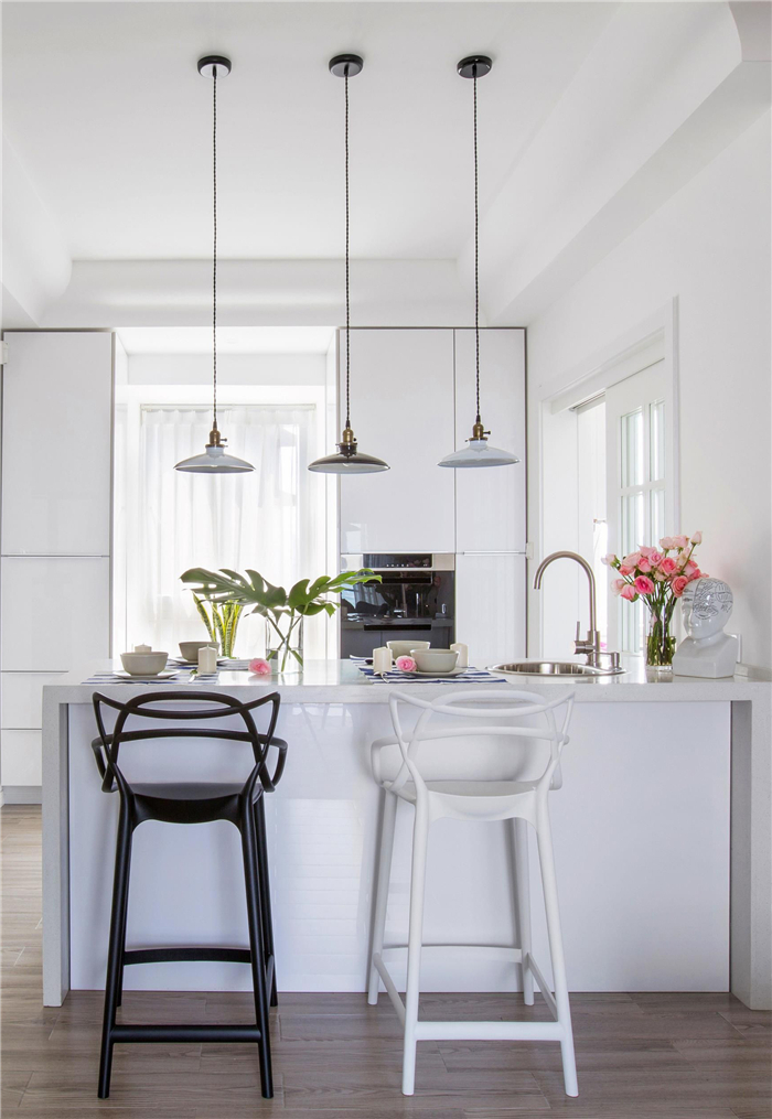 廚房-開放式廚房配合簡單的吧臺式餐廳顯得簡單上檔次,凸顯業(yè)主的品味