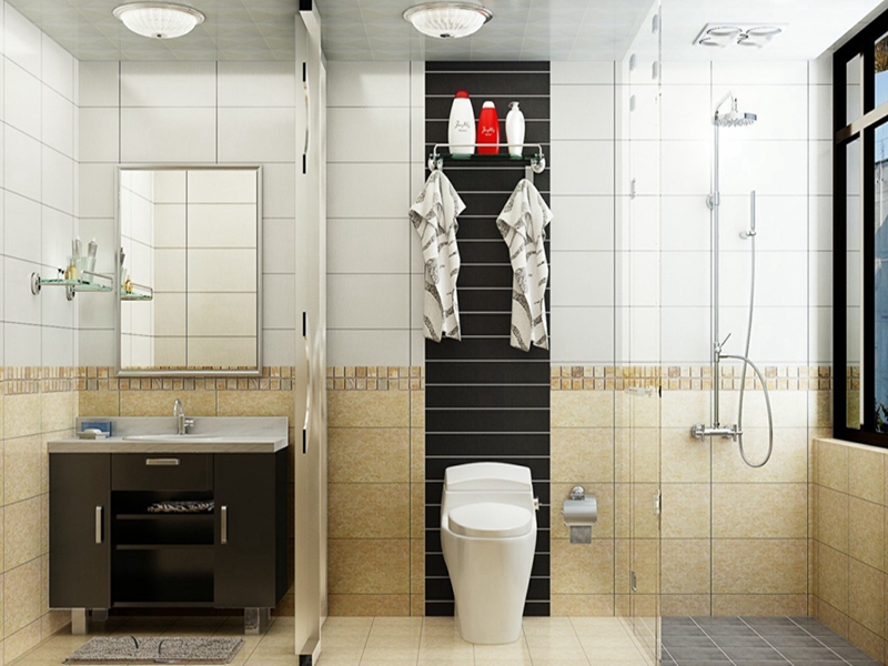 衛(wèi)生間整體呈長(zhǎng)方形且長(zhǎng)寬比例約為2:1,所以設(shè)計(jì)師利用這一點(diǎn),把它分為了3個(gè)區(qū)域,中間用玻璃做了隔斷,功能分明卻也空間通透。
