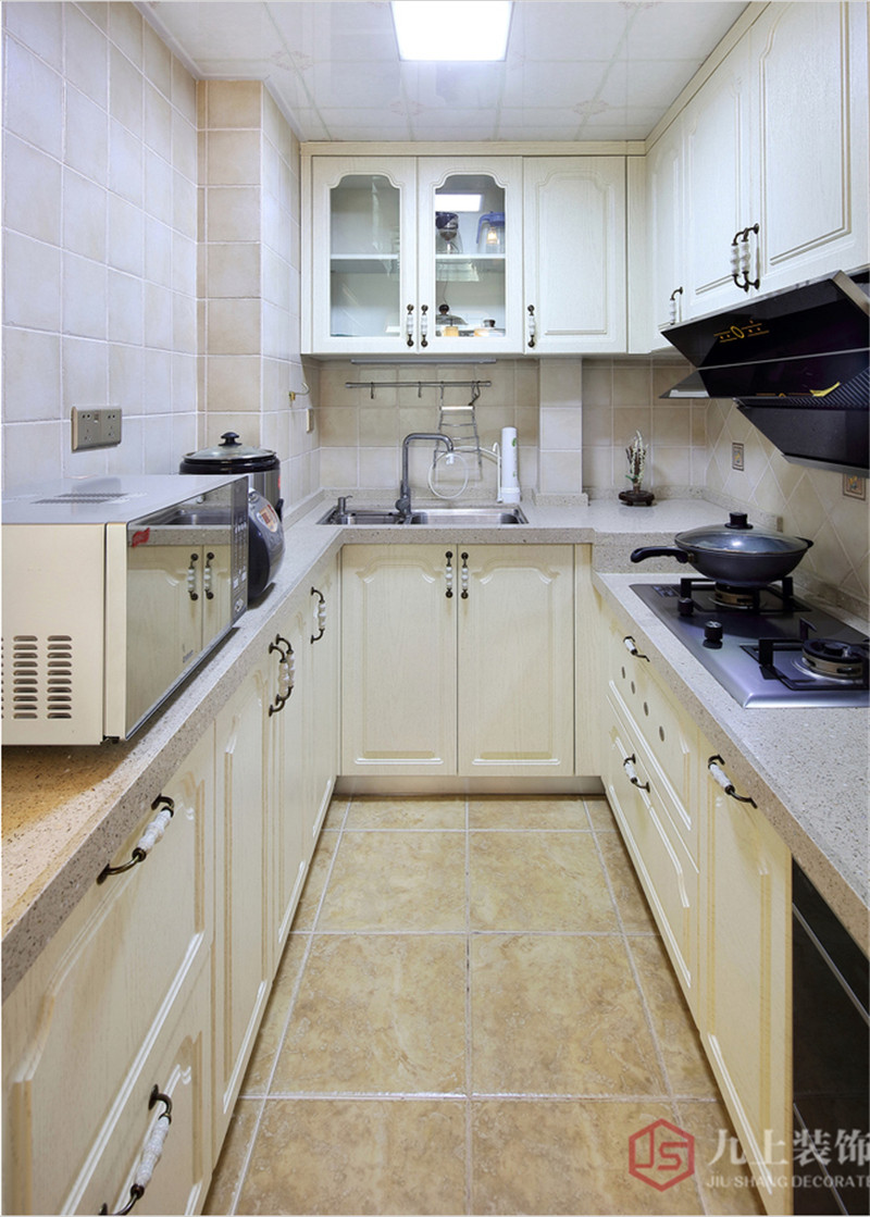 廚房位于玄關(guān)的一側(cè),拉門的設(shè)計,節(jié)省空間,簡約時尚,廚房連接著餐廳,開放式的效果,舒適自然的生活態(tài)度。