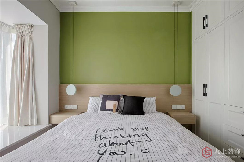 構思主臥格局時,設計師以空間開放性與視覺穿透性為優(yōu)先,讓戶外的自然光線能隨著日光推移灑入室內,讓綠色系空間能依循時間感變化濃淡、飽富輕盈的節(jié)奏感。