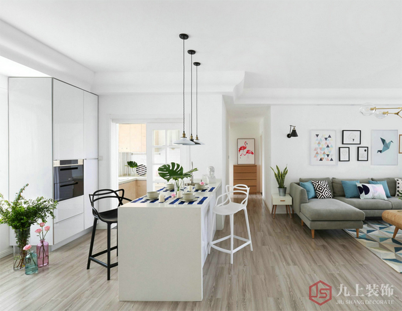 簡約、自然、幸福??臻g極致的簡約還原了北歐至凈的生活。潔凈的色調(diào)讓居室成了一張潔白的畫紙,隨著時間,絲絲淡雅暈染出淺淡的生活情調(diào)。