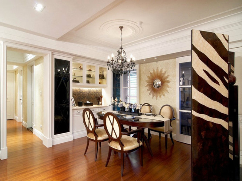 餐廳立面部分,由繃布、黑鏡、銀箔柜或鱷魚(yú)皮等不同材質(zhì)加以陳設(shè)妝點(diǎn),無(wú)論從哪個(gè)角度都可表現(xiàn)混搭的美式古典及奢華質(zhì)地,再鋪陳木質(zhì)地板強(qiáng)化溫暖屬性,居家情緒完整而豐富。