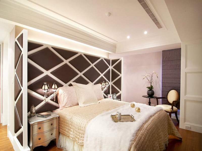 主臥床頭白色菱格揉入紫色繃布立面,有別于繁復(fù)的古典語(yǔ)匯,以現(xiàn)代手法加入浪漫時(shí)尚感,凝聚出不落俗套的視覺(jué)焦點(diǎn)。