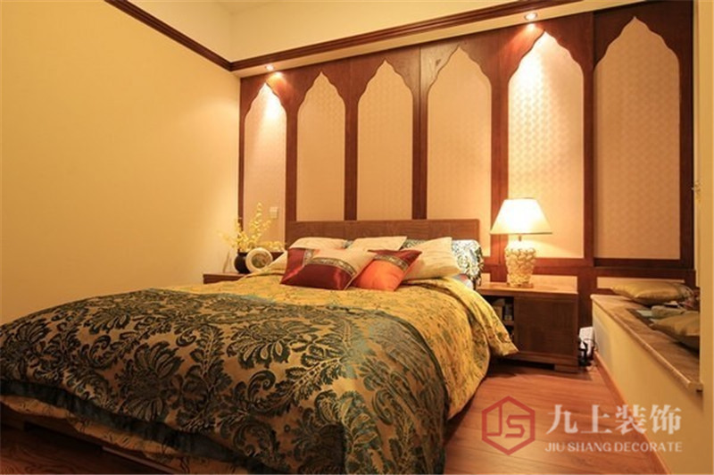 臥室盡量簡化家具,木色依舊是主調(diào),整體顯得開闊大氣