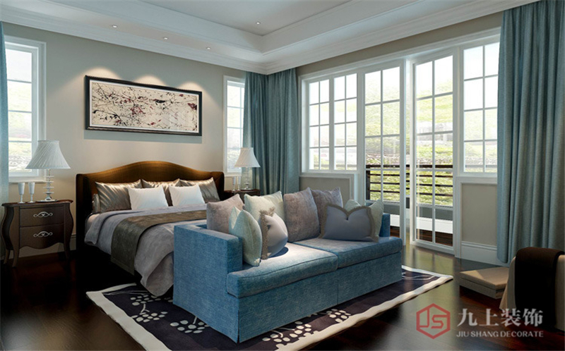 本方案是一套歐式風(fēng)格的設(shè)計(jì),由于本身的采光比較好,且房高較高,我們用了暖色的墻面漆結(jié)合白色的書柜和門及門套。