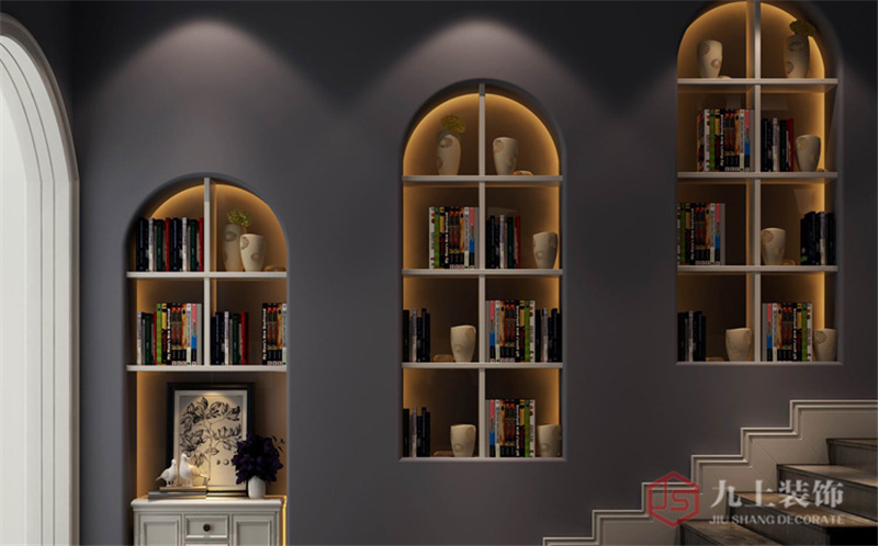 在過道處做出體現(xiàn)業(yè)主思想的書柜,是整個(gè)戶型的一個(gè)亮點(diǎn),通過這個(gè)過道的改動(dòng),使得整個(gè)過道活潑而有內(nèi)涵。